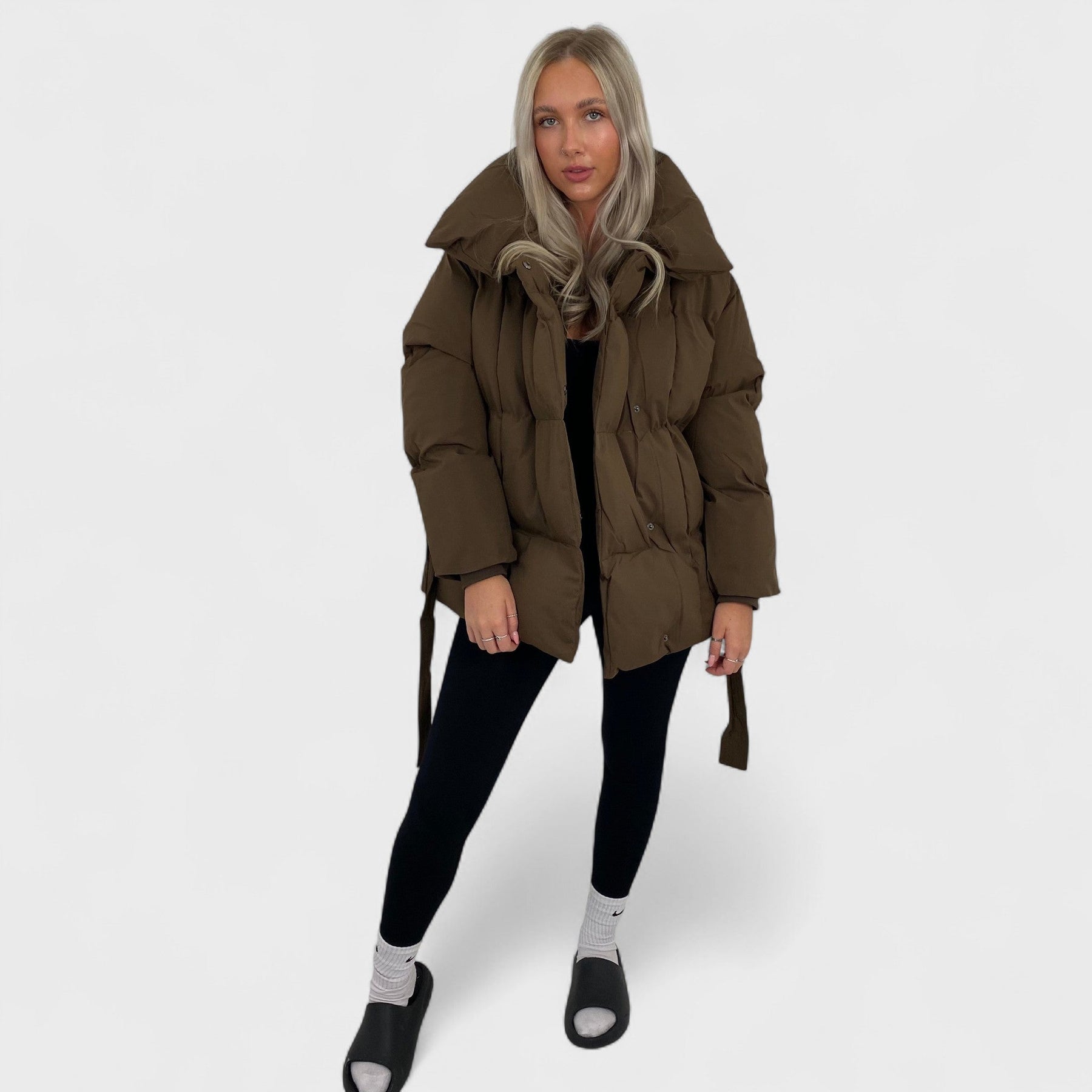 С Елица – Стилно зимно яке с модерна кройка ще придадете на зимната си визия допълнителна доза стил и увереност. Това модерно яке съчетава тренди дизайн с уютна топлина – перфектно за дни, в които искате да изглеждате шик и да се чувствате комфортно. Съвременната кройка подчертава силуета, а обемната яка добавя нотка изтънченост към всеки тоалет.
