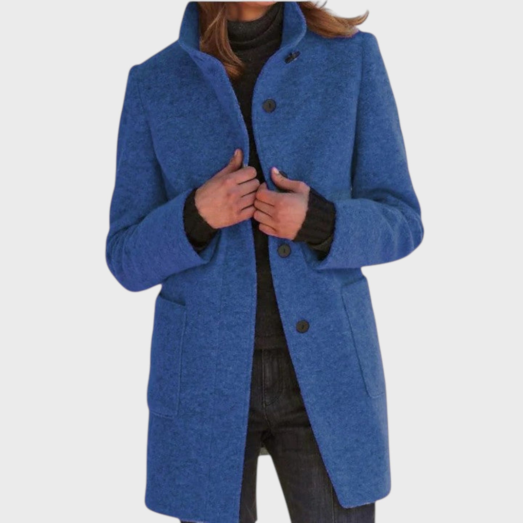 Излъчвайте увереност и класа с палто "Симона". Неговият отличителен дизайн с висока яка и изчистен силует е въплъщение на безупречното изящество. Създадено за модерната жена, това палто безпроблемно преминава от натовареното ежедневие към специални поводи, като ви гарантира изискан и стилен външен вид, където и да отидете.