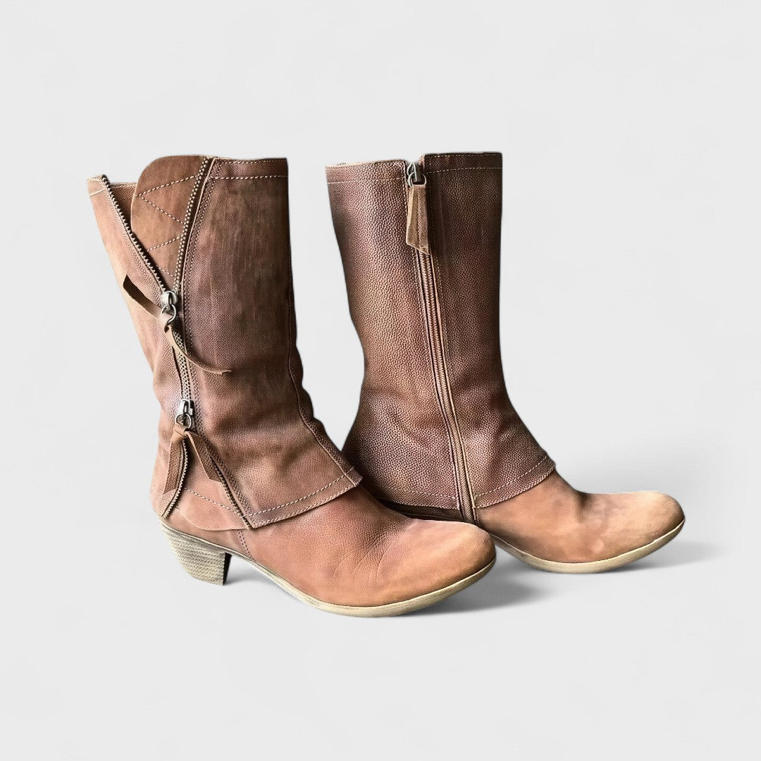 • Стилен детайл с функционалност – страничният цип прави обуването лесно, без да жертва естетиката.